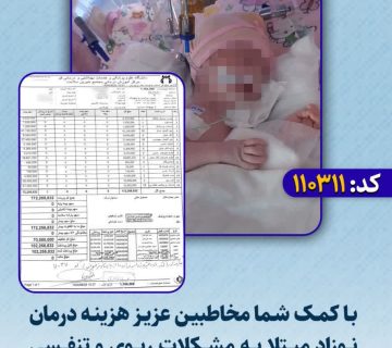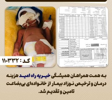 گزارش کمک های شما به خیریه راه امید :(کد 110311)Adminاکتبر 3, 2025با کمک شما مخاطبین عزیز هزینه درمان نوزاد مبتلا به مشکلات ریوی و تنفسی تامین شده و نوزاد ترخیص گردید. ... ادامه مطلب