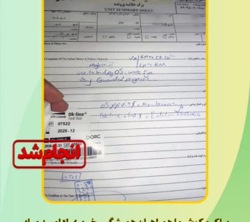 گزارش کمک های شما به خیریه راه امید : کد (110118)Adminسپتامبر 18, 2025با کمک شما مخاطبان عزیز هزینه درمانی مادر مبتلا به بیماری ریوی و تحت دیالیز تامین شد و تقدیم گردید. ... ادامه مطلب