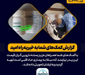 گزارش کمک های شما به خیریه راه امید : (کد 110329)Adminسپتامبر 13, 2025با کمک های شما همـراهان عزیز بستـه دارویـی گـران قیمت ایـن پــدر نیازمند که مبتلا به بیماری حاد قلبی است ... ادامه مطلب