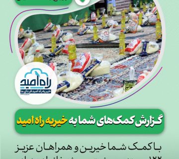 گزارش کمکهای شما به خیریه راه امیدAdminسپتامبر 4, 2025با کمک شما خیرین و همراهان عزیز ۱۲۲ بسته معیشتی ویژه خانوادههای نیازمند و محروم تهیه و توزیع شد. ... ادامه مطلب