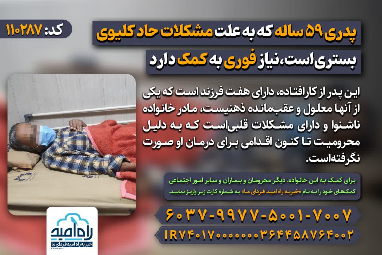 این پدر از کارافتاده،دارای هفت فرزند است که یکی از آنها معلول و عقبمانده ذهنیست،