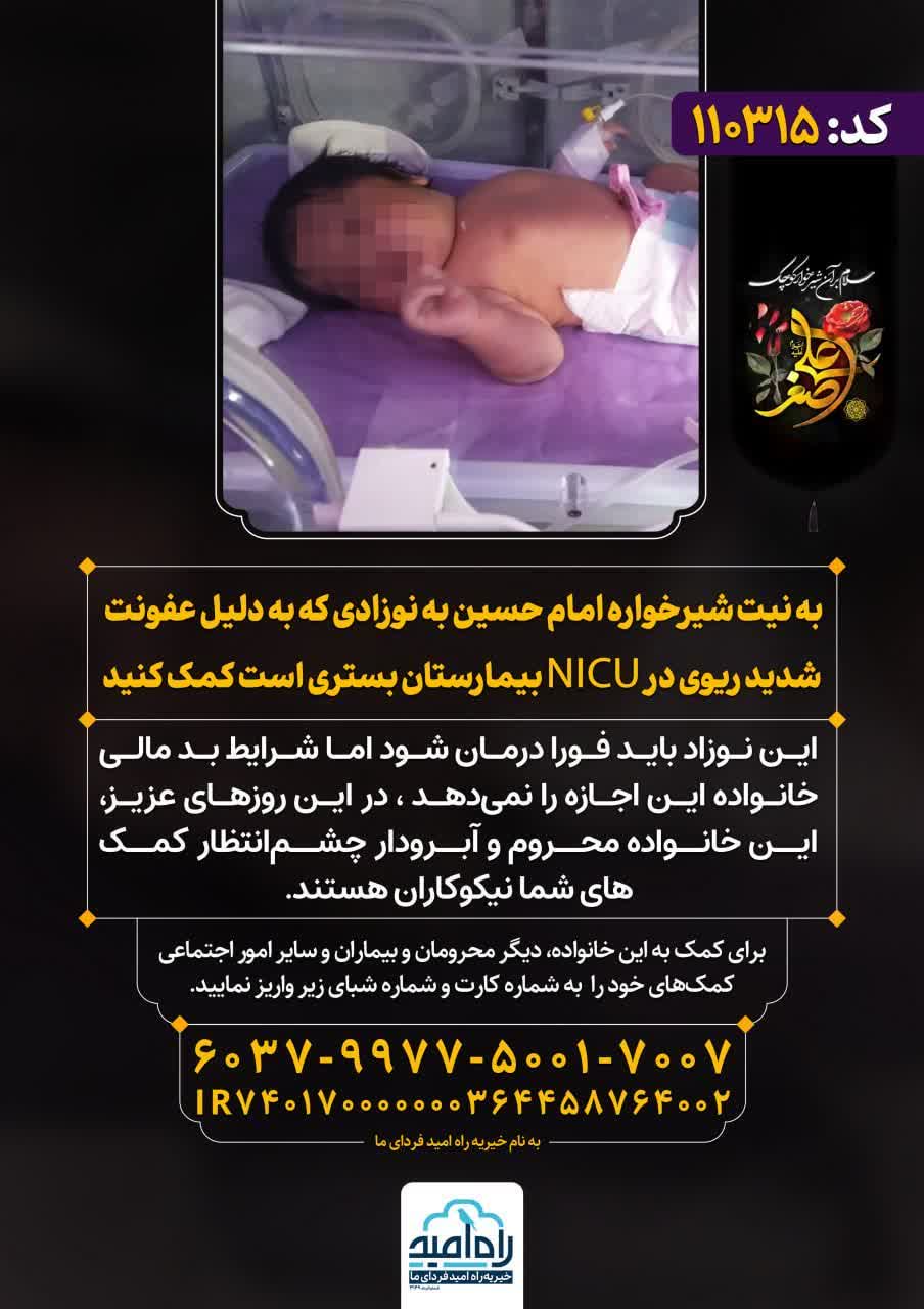 این نوزاد باید فورا درمان شود اما شرایط بد مالی خانواده این اجازه را نمیدهد،