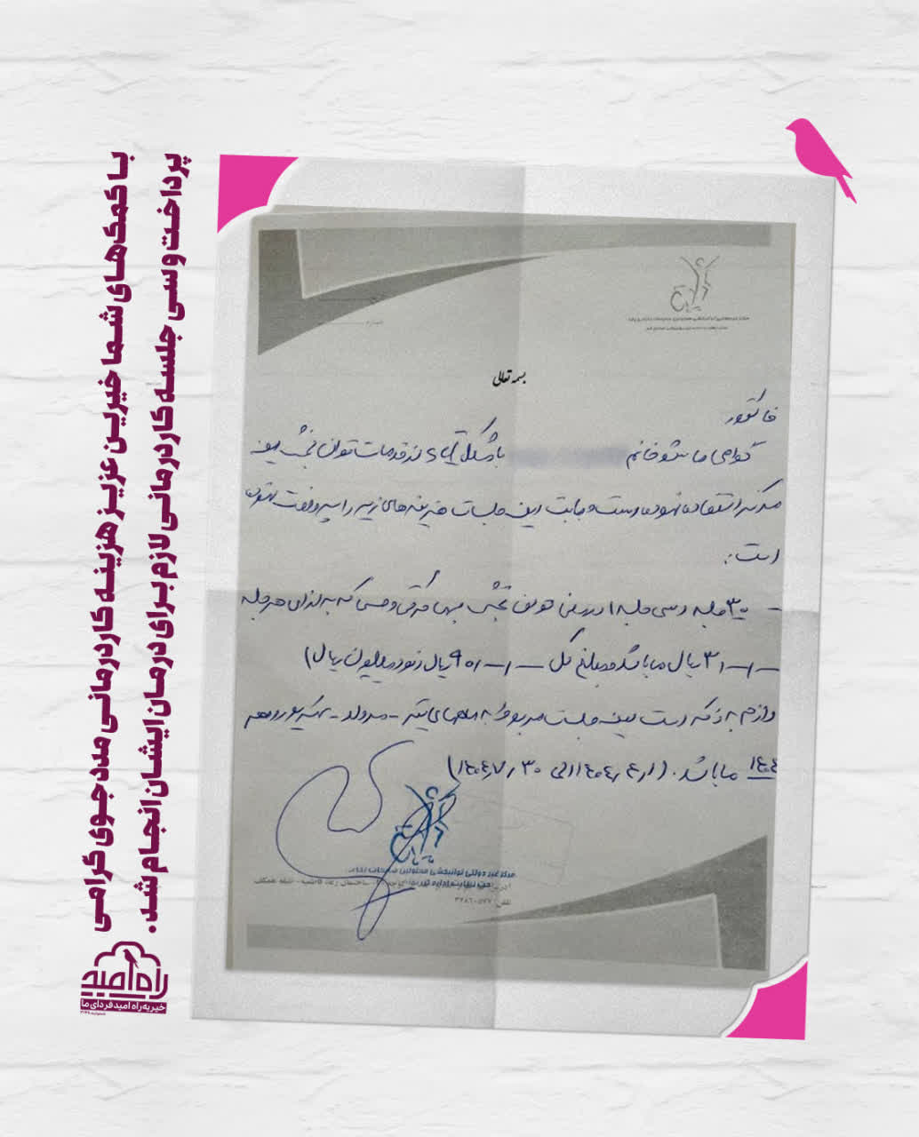 با کمکهای شما خیرین عزیز هزینه کاردرمانی مددجوی گرامی پرداخت و سی جلسه کاردرمانی لازم برای درمان ایشان انجام شد .