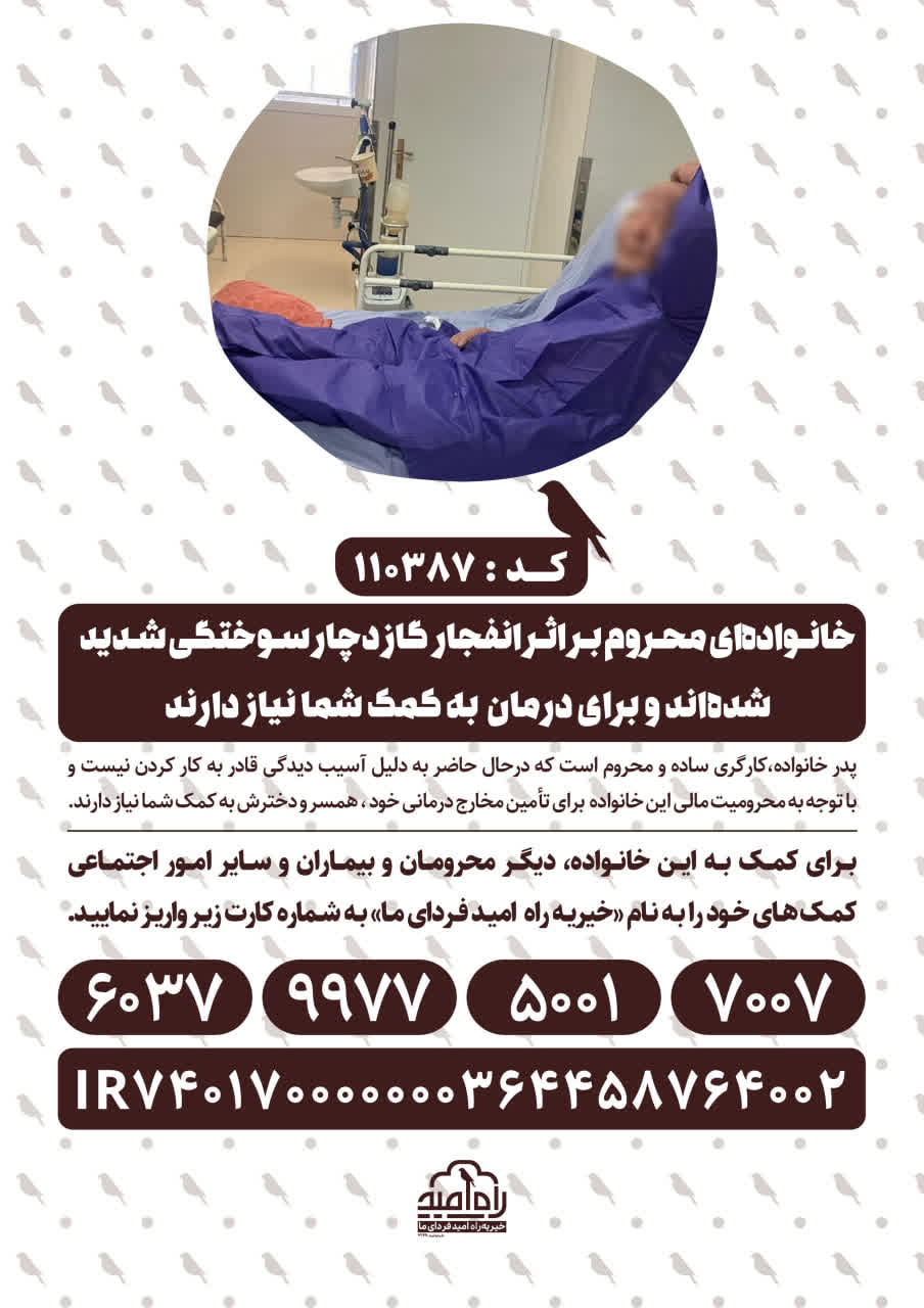 برای کمک به این خانواده، دیگر محرومان و بیماران و سایر امور اجتماعی کمکهای خود را به نام «خیریه راه امید فردای ما»