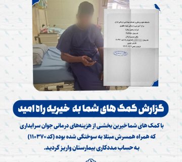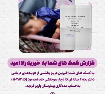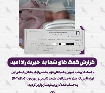 با کمک های شما عزیزان بخشــی از هزینههای درمانی و عمل قلب این نوزاد مبتلا به بیماری قلبی بود بـه حساب مـددکاری بیمارستان واریـز گردیـد.
