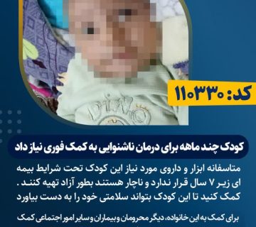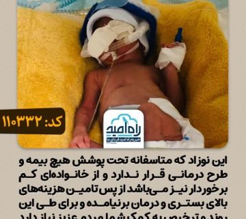 نوزاد بستری در NICU برای درمان و ترخیص به کمک شما نیاز داردAdminآگوست 22, 2025این نوزاد که متاسفانه تحت پوشش هیچ بیمه و طرح درمانی قرار ندارد و از خانوادهای کمبرخوردار نیز میباشد از ... ادامه مطلب