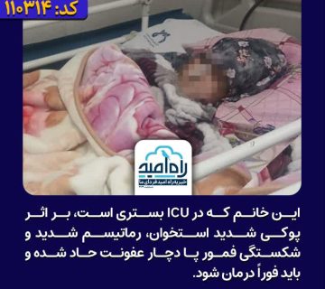 مادری مبتلا به رماتیسم و عفونت شدید، برای درمان فوری به کمک نیاز داردAdminژوئن 23, 2025این خانم که در ICU بستری است، بر اثر پوکی شدید استخوان، رماتیسم شدید و شکستگی فمور پا دچار عفونت ... ادامه مطلب