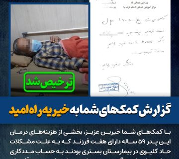 گزارش کمکهای شما به خیریه راه امید(کد 110287):Adminژوئن 23, 2025کمکهای شما خیرین عزیز، بخشی از هزینههای درمان این پدر ۵۹ ساله دارای هفت فرزند که به علت مشکلات حاد ... ادامه مطلب