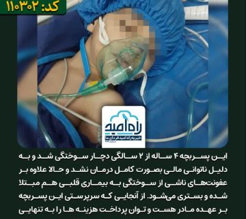 پسربچه ۴ ساله برای درمان سوختگی و بیماری قلب سریعا به کمک نیاز دارد