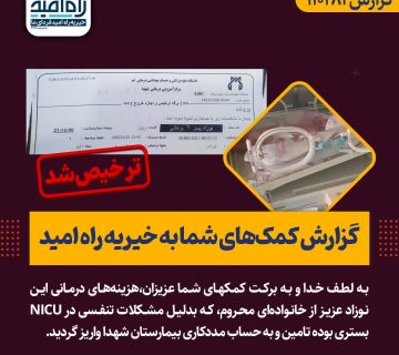 گزارش کمکهای شما به خیریه راه امید:Adminمارس 11, 2025به لطف خدا و به برکت کمکهای شما عزیزان،هزینههای درمانی این نوزاد عزیز از خانوادهای محروم، که بدلیل مشکلات تنفسی ... ادامه مطلب